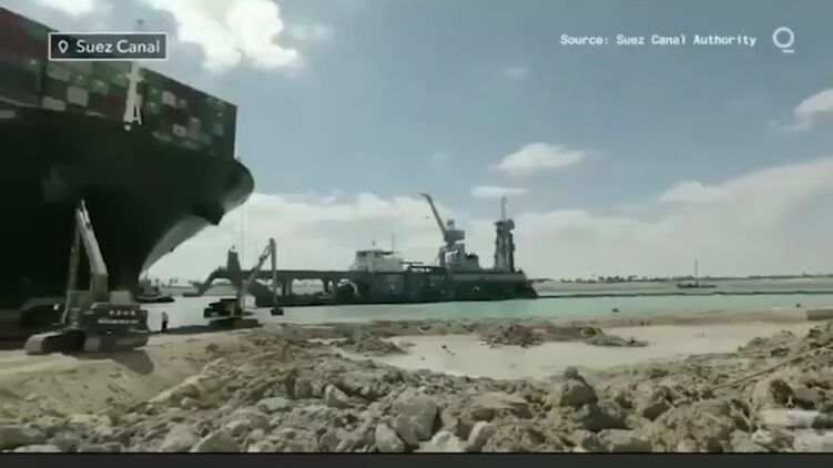Напомним, что контейнеровоз Ever Given сел на мель и полностью парализовал движение по Суэцкому каналу 23 марта.