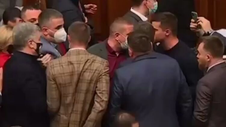 Во время выступления народного депутата от "Евросолидарности" Ирины Геращенко в Верховной Раде произошла потасовка. Экс-президент и представитель фракции Петр Порошенко пытался подойти к трибуне, однако проход ему заблокировали нардепы от "Слуги народа".
