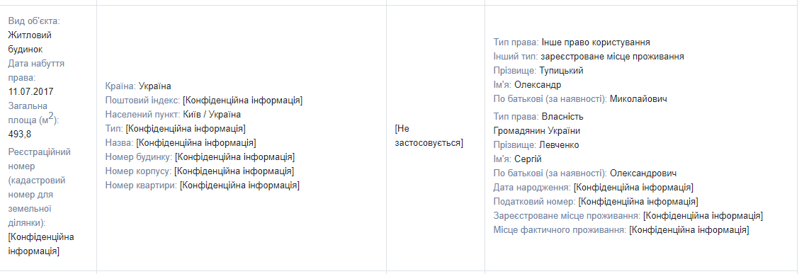 Кроме того, в его собственности находится дом в Киеве площадью 60 кв.м., квартира в Киеве на 216 кв.м., земельный участок в Василькове Киевской области площадью 750 кв.м. Тупицкий также имеет право бесплатного проживания в доме в Киеве площадью 493,8 кв.м..