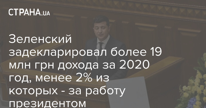 Президент Украины Владимир Зеленский, который за 2019 год задекларировал 15 млн грн дохода, в 2020 году заработал 19,1 млн.