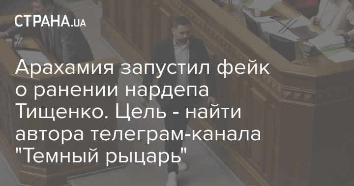 Арахамия распространил фейк о ножевом ранении Тищенко, чтобы выявить автора телеграм-канала "Темный рыцарь". Скриншот