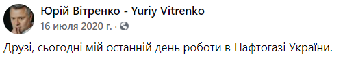 При этом работал Витренко в газовой корпорации только до 16 июля - то есть шесть с половиной месяцев.