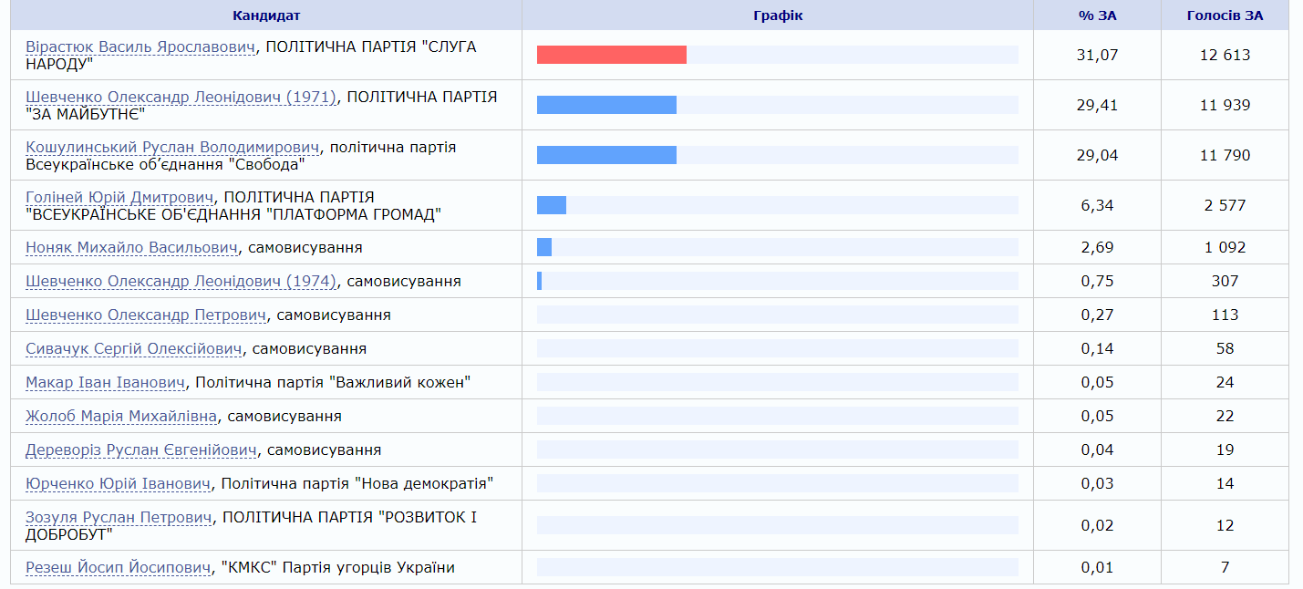 - Василий Вирастюк, "Слуга народа" – 31,07%;