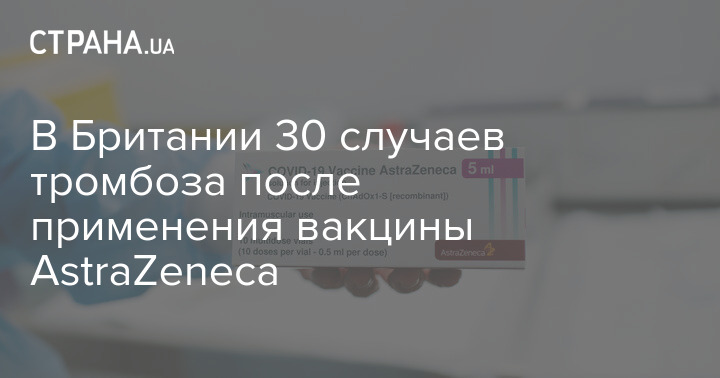 В Великобритании выявили побочные эффекты в виде тромбозов у 30 пациентов, которые сделали прививку от Covid-19 вакциной AstraZeneca (Vaxzevria).