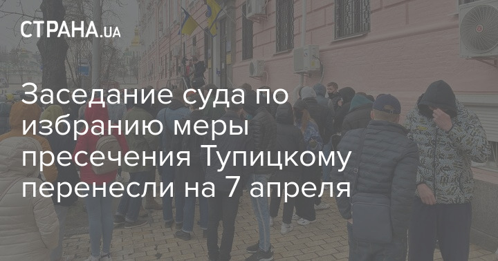 Сегодня, 2 апреля, в 10:00 Печерский райсуд Киева должен был рассмотреть ходатайство об избрании меры пресечения Александру Тупицкому, указ о назначении которого на должность судьи Конституционного суда (КС) отменен. Однако, как сообщил его адвокат, из-за акции протеста под судом, охрана Тупицкого рекомендовала ему не идти в суд, так как это небезопасно. Из-за его неявки в суд заседание перенесли на 7 апреля, на 10:00.
