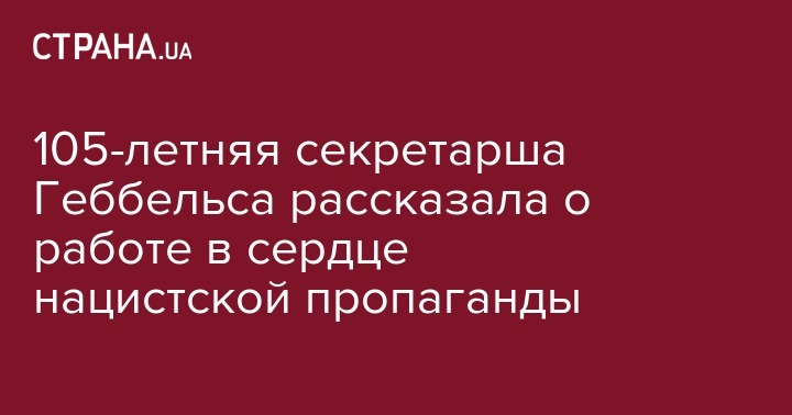 105-летняя экс-секретарша Йозефа Геббельса Брунгильда Помзель рассказала про условия работы и атмосферу, царившую в приемной самого известного госдеятеля нацистской Германии. Об этом сообщает The Guardian.