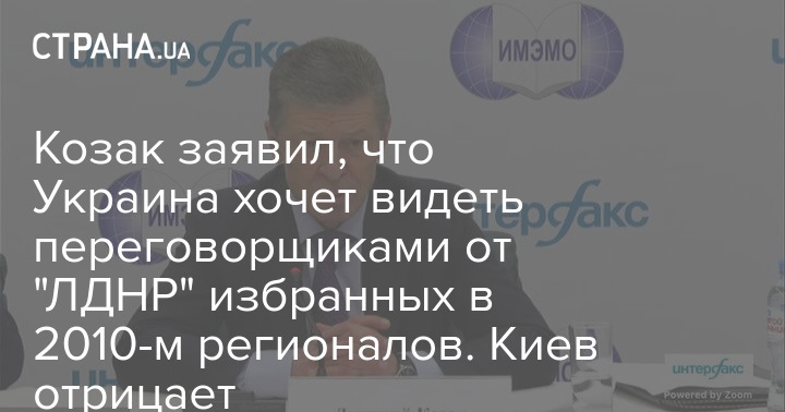 Козак заявил, что Украина хочет видеть переговорщиками от "ЛДНР" избранных в 2010-м регионалов. Киев отрицает