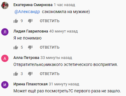 "Сэкономила на мужике", "Я не понимаю", "Отвратительно, никакого эстетического восприятия", "Может, еще раз посмотреть? с первого раза не зашло", - делятся комментариями поклонники певицы.