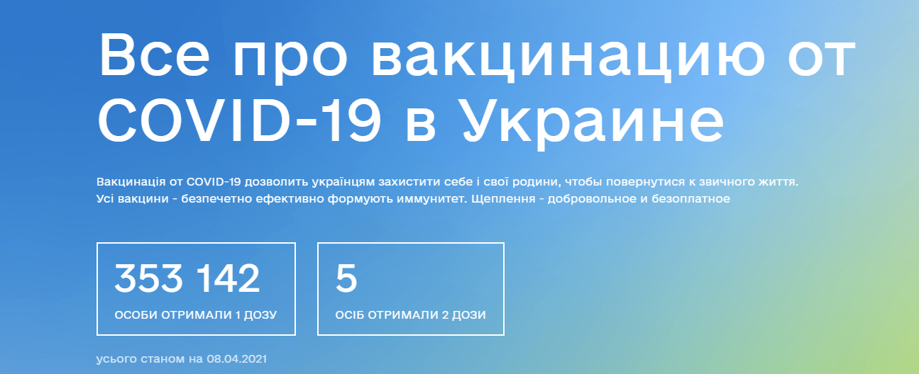 "353 142 получили одну дозу. 5 человек получили две дозы", - говорится в инфографике Минздрава Украины.