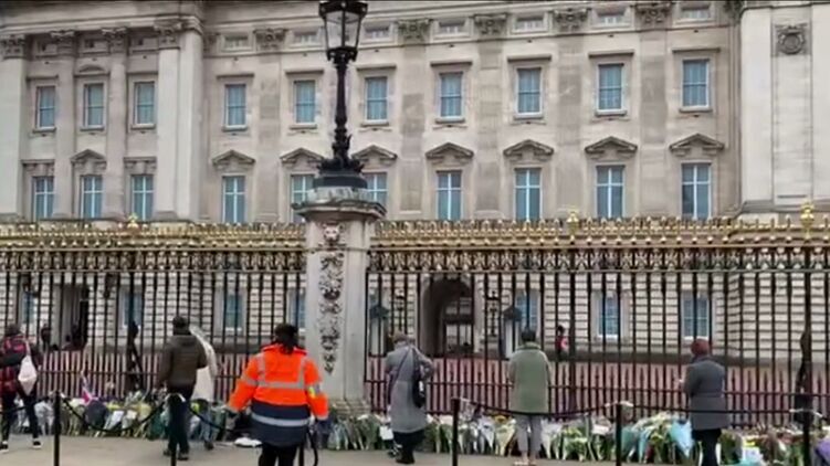 В Великобритании после смерти принца Филипа люди выстраиваются в очередь, чтобы возложить цветы возле ограды Букингемского дворца и почтить память умершего.