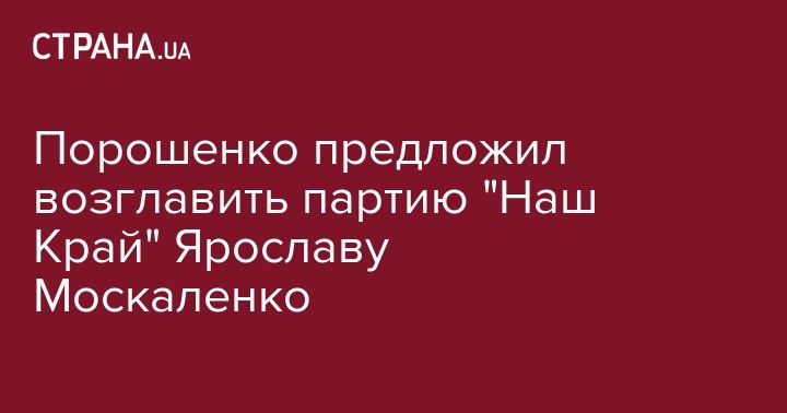 Лидер депутатской группы "Воля народа" Ярослав Москаленко получил от президента Петра Порошенко предложение возглавить партию "Наш край". Об этом "Стране" сообщил источник в этом парламентском объединении.