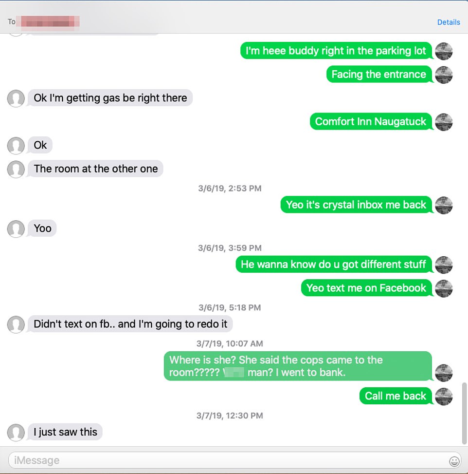 Согласно его сообщениям, Хантер второй раз столкнулся с законом в марте 2019 года, когда якобы полиция появилась в мотеле в Наугатаке, штат Коннектикут, где Хантер принимал наркотики и развлекал проституток.