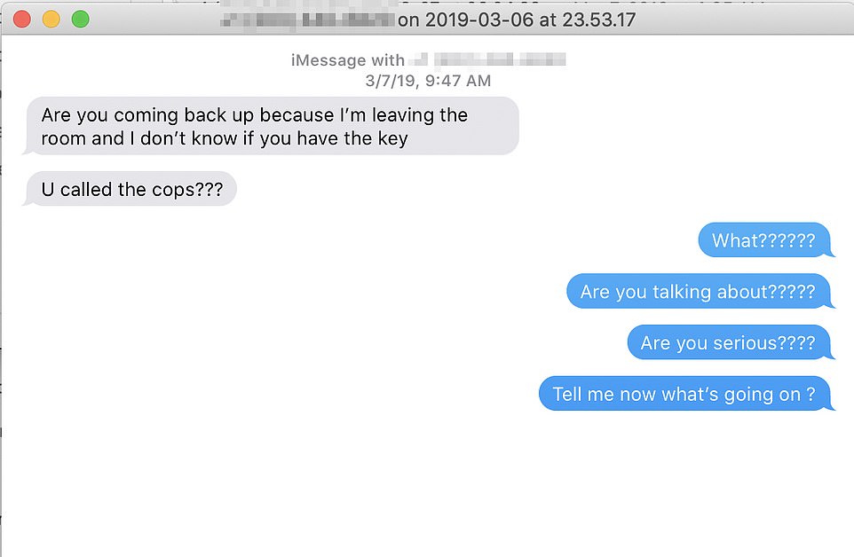 В сообщениях офицер секретной службы из Лос-Анджелеса предупредил Хантера, что ему "придется предположить, что тот в опасности" и получить ключи от комнаты, если он не выйдет.