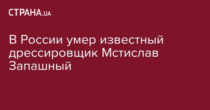 Запашный скончался в Сочи. "Только что мне сообщили, что умер мой дядя Мстислав Михайлович Запашный. Это произошло в Сочи", — сказал его племянник, генеральный директор Большого Московского цирка Эдгард Запашный.