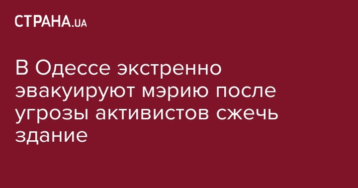 Сегодня, 22 сентября, служба безопасности Одесской мэрии приняла решение эвакуировать всех сотрудников муниципалитета после того, как от активистов так называемого "Антитрухановского майдана" поступила угроза поджечь здание мэрии. Об этом сообщает "Таймер".