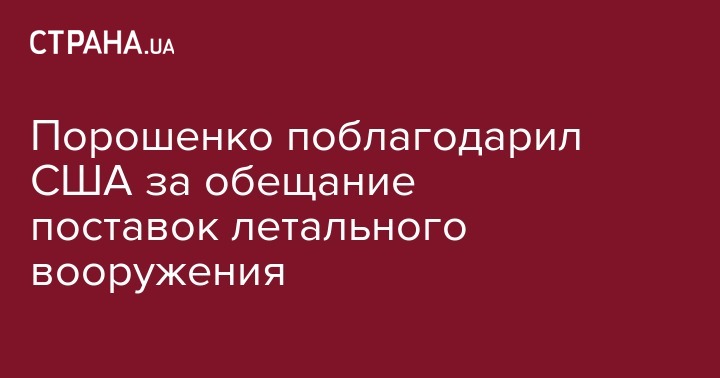 Порошенко поблагодарил США за обещание поставок летального вооружения