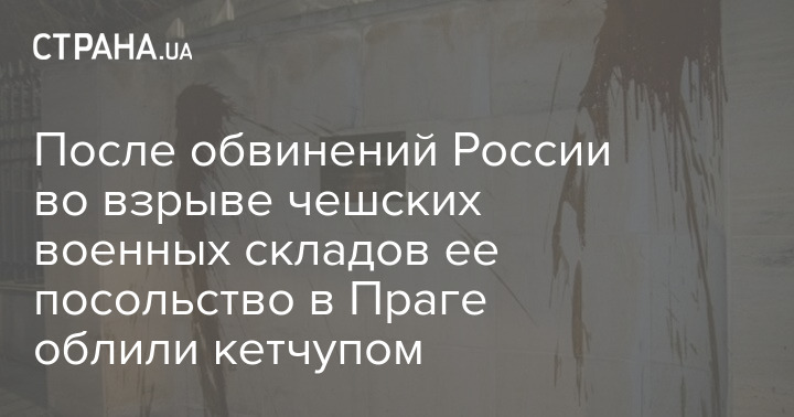 В столице Чехии неизвестные облили стены посольства Российской Федерации кетчупом. Виновники, которых уже задержали, признались, что сделали это из-за взрывов военных складов в Врбетице, которые произошли еще в 2014-м.