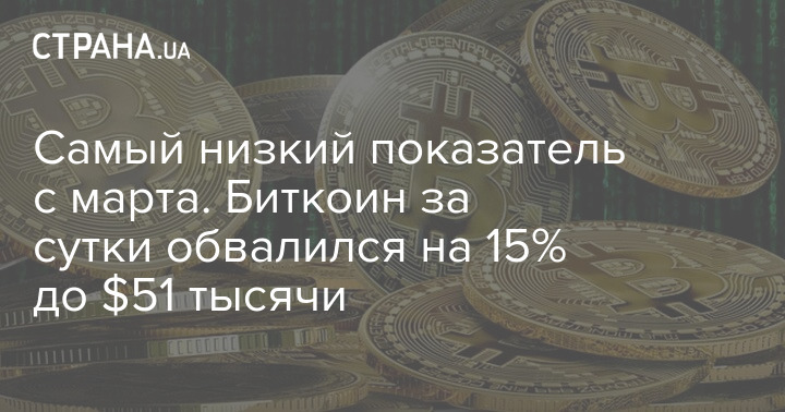 За минувшие сутки стоимость биткоина обвалилась еще на 15%. Криптовалюта опустилась до 51 тысячи долларов, в то время как еще пять дней назад торговалась на отметке в $62,5.