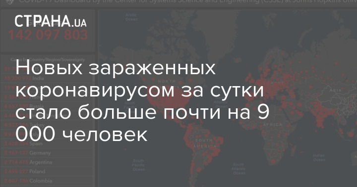 Новых зараженных коронавирусом за сутки стало больше почти на 9 000 человек