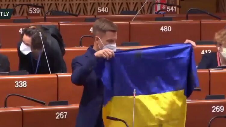 "Покиньте помещение". Нардепа Гончаренко лишили слова в ПАСЕ после демонстрации флага Украины. Видео