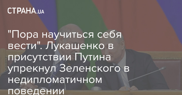 "Мне кажется, Владимир Владимирович, Зеленскому пора уже научиться конкретно дипломатично себя вести, кроме всего прочего", - сказал белорусский лидер.