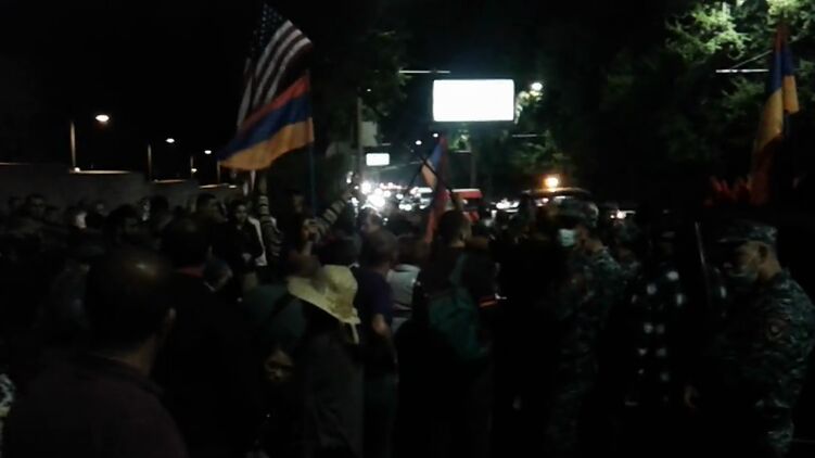 К посольству США в Ереване пришли сотни людей. Скриншот из видео