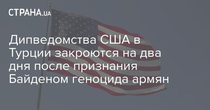 В понедельник и вторник, 26-27 апреля, посольства и консульства США в Турции будут закрыты. Такое решение было принято в качестве меры предосторожности из-за возможных акций протеста после признания американским президентом Джо Байденом геноцида армян в Османской империи.
