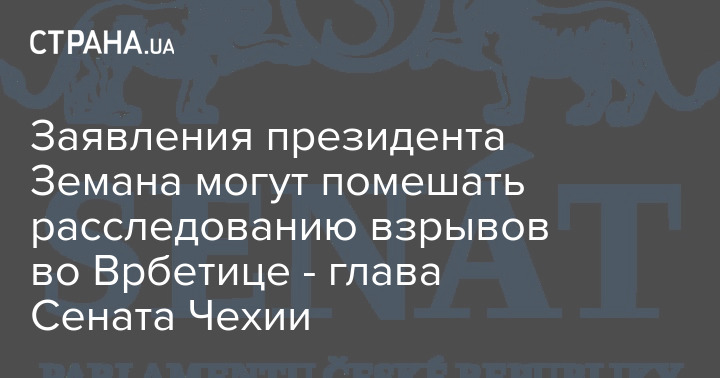 Глава Сената Чехии обвинил в угрозе "успешному" расследованию взрывов во Врбетице президента страны. Фото: senat.cz