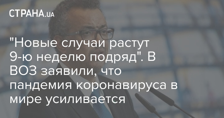 Генеральный директор Всемирной организации здравоохранения (ВОЗ) Тедрос Аданом Гебрейесус заявил, что пандемия Сovid-19 в мире усиливается. Кроме того, по его словам, шестую неделю подряд наблюдается рост количества новых смертей от болезни.