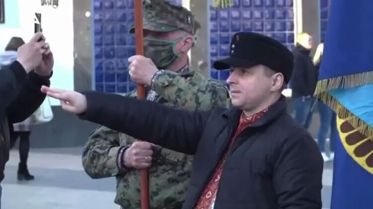 Не прошло без эксцессов. В ходе мероприятия один из участников не удержался, и начал демонстративно вскидывать руку в нацистском приветствии.