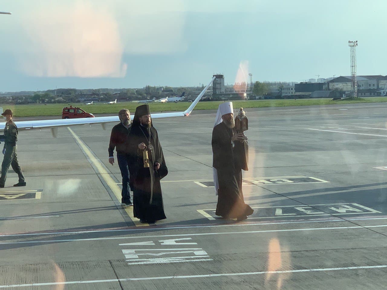 Огонь доставила делегация Украинской православной церкви (УПЦ). Встреча проходила в аэропорту "Жуляны". По приезду в Киев Благодатный огонь будет передан представителями епархий УПЦ во все уголки Украины.