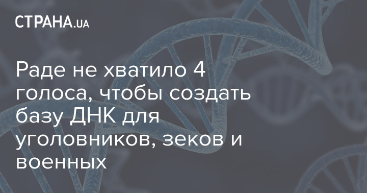 Верховная Рада не поддержала законопроект №4265 о государственной регистрации геномной информации человека. За данный документ проголосовало 222 нардепа при необходимых 226. Таким образом, для принятия законопроекта в первом чтении не хватило всего четыре голоса.
