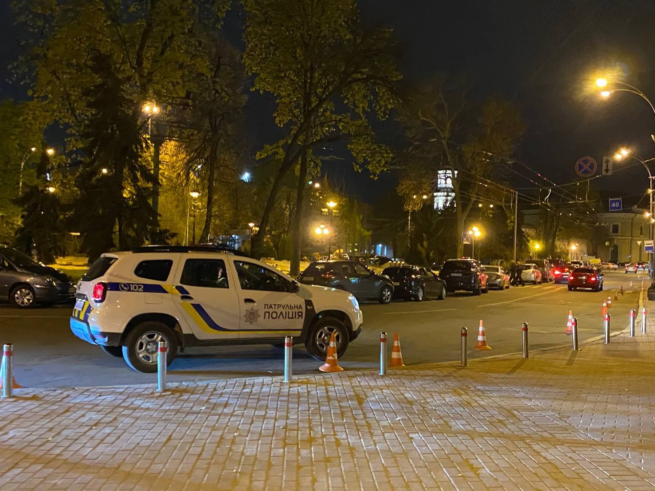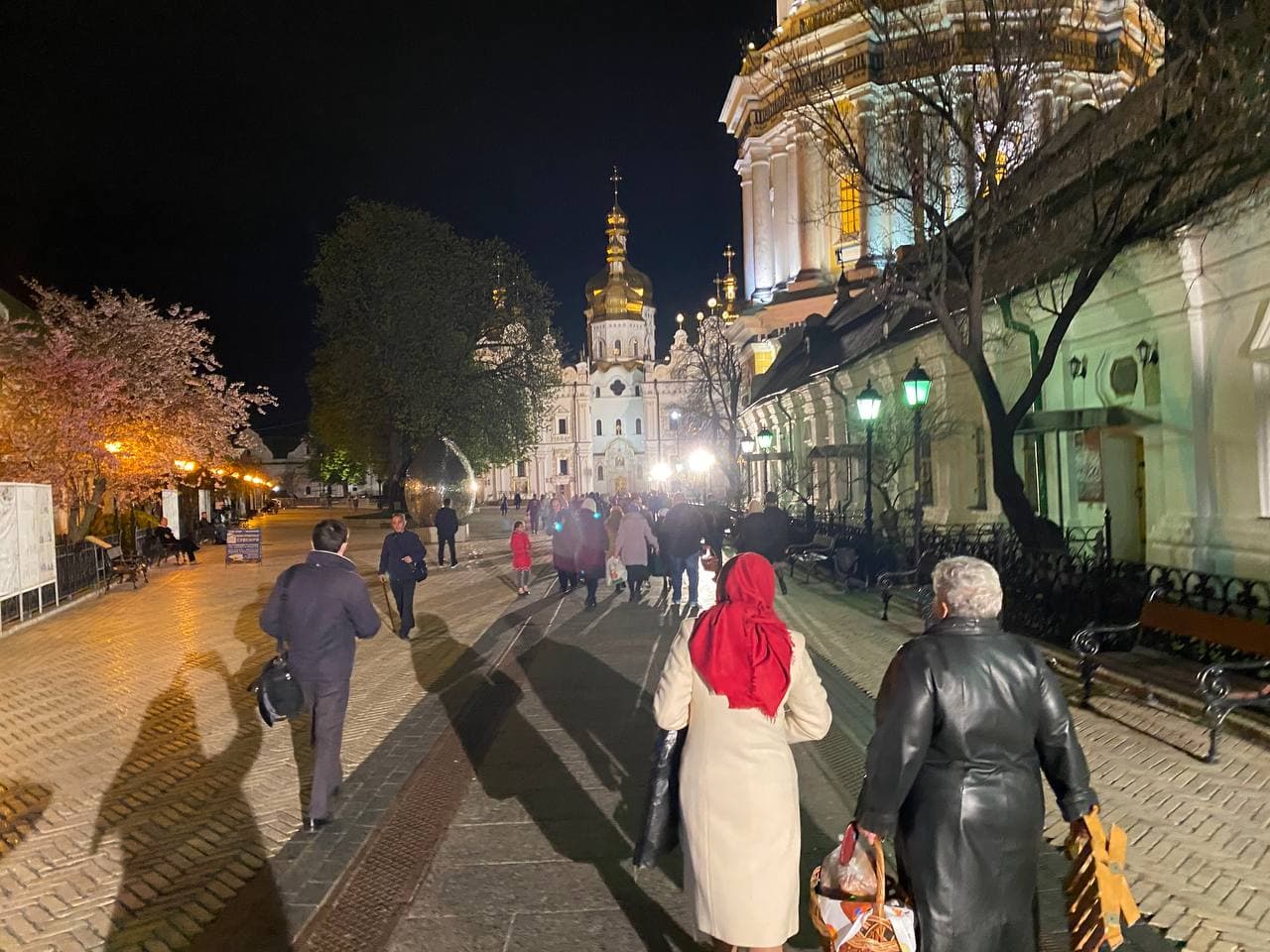 23:14  К Киево-Печерской Лавре съезжаются машины с желающими присутствовать на пасхальной службе.