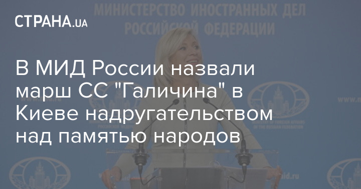 Официальный представитель МИД России Мария Захарова на фоне марша в честь дивизии СС "Галичина" по Киеву заявила, что неонацизм в Украине подтверждается множественными фактами.