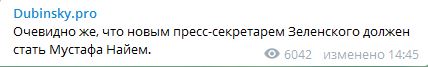 "Очевидно же, что новым пресс-секретарем Зеленского должен стать Мустафа Найем" – написал он.