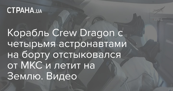 Американский многоразовый космический корабль Crew Dragon-1 компании Илона Маска SpaceX с четырьмя астронавтами на борту отстыковался от Международной космической станции (МКС). Аппарат готовится к возвращению на Землю.