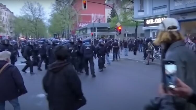 Уже ближе к вечеру мирные акции переросли в беспорядки, в результате чего пострадали 30 сотрудников полиции. Беспорядки начались после шествия в округе Нойкельн-Кройцберг, в котором принимали участие от 8 до 10 тысяч человек. Через час после начала мероприятия полиция остановила шествие, поскольку участники были без масок и не соблюдали дистанцию.