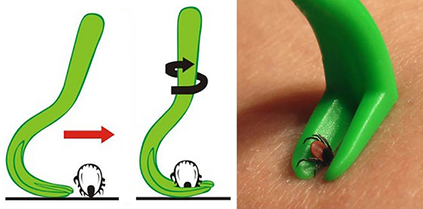 Вытащить клеща самостоятельно можно с помощью пинцета или специального устройства, которое можно купить в аптеке. Так выглядит устройство для извлечения клеща.