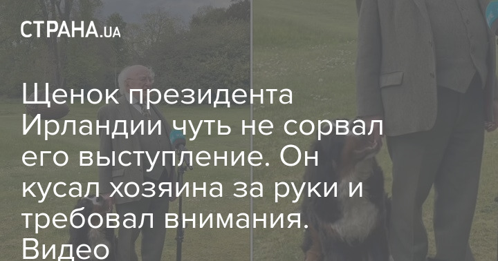 Щенок президента Ирландии чуть не сорвал его выступление. Он кусал хозяина за руки и требовал внимания. Видео