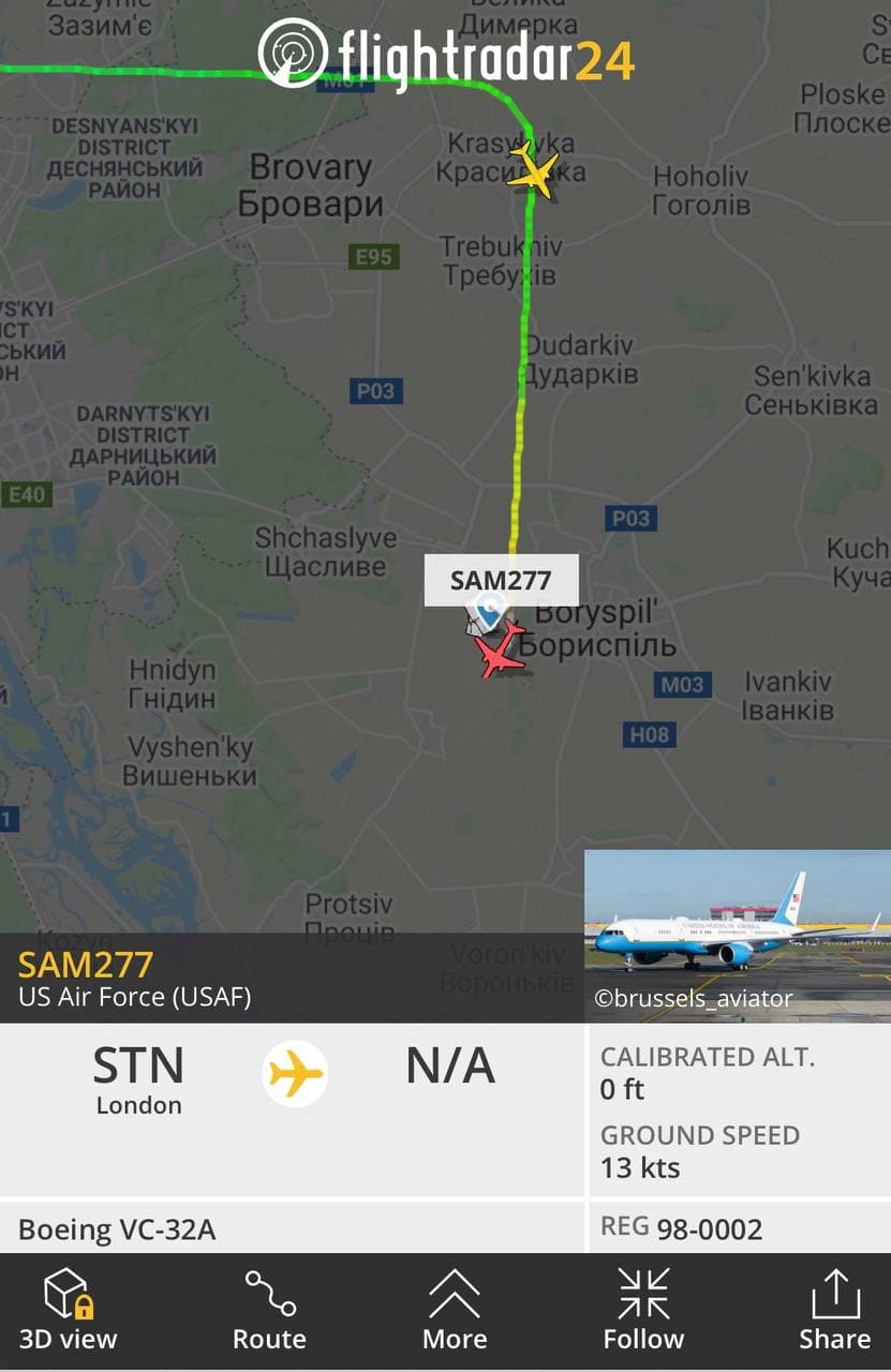 Самолёт государственного секретаря Энтони Блинкена приземлился в аэропорту Борисполь.