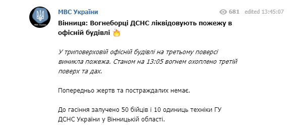 В четверг, 6 мая, в офисном здании Винницы произошел смертельный пожар. Огнем охвачены третий этаж и крыша.