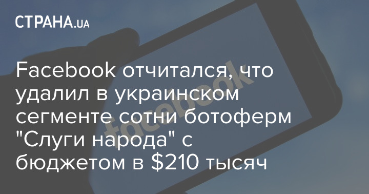 Американская социальная сеть Facebook подготовила отчет за апрель 2021 года о спланированном продвижении дезинформации (СПД). В разделе документа, посвященном Украине, говорится, что с помощью ФБР были закрыты сотни ботоферм, связанных с партией "Слуга народа".