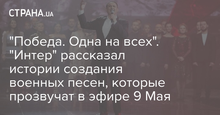 В это воскресенье, 9 мая, канал "Интер" традиционно покажет большой праздничный концерт "Победа. Одна на всех" (начало в 20:30 - Ред.). Известные украинские артисты споют военные песни, без которых невозможно представить День Победы.