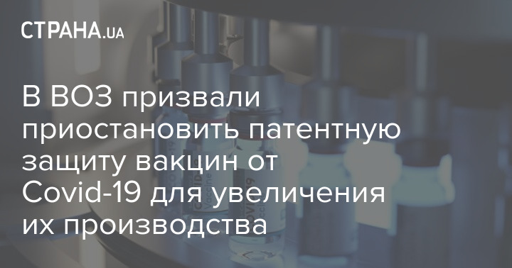 Всемирная организация здравоохранения (ВОЗ) призывает увеличить мировое производство вакцин от коронавируса за счет приостановки их патентной защиты. Об этом заявил на брифинге в Женеве генеральный директор ВОЗ Тедрос Аданом Гебрейесус.
