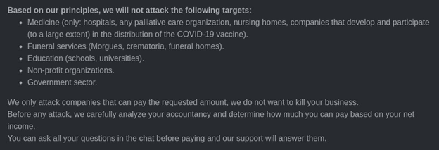 Сами же представители DarkSide заявили, что они полностью аполитичны, и интересуются только зарабатыванием денег.
