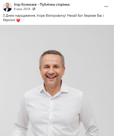 Мэр Херсона Игорь Колыхаев тремя днями ранее отметил 50-летие. По случаю юбилея он решил сам себя поздравить с днем рождения.