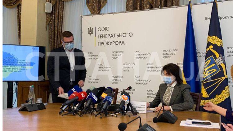 Баканов и Венедиктова провели брифинг по поводу подозрений Медведчуку и Козаку. Фото: Страна