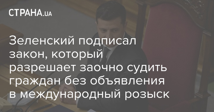 Президент Украины Владимир Зеленский подписал закон "О внесении изменений в Уголовный процессуальный кодекс Украины относительно совершенствования отдельных положений в связи с осуществлением специального предварительного расследования", который позволяет начинать процедуру заочного осуждения без решения об объявлении человека в розыск через Интерпол