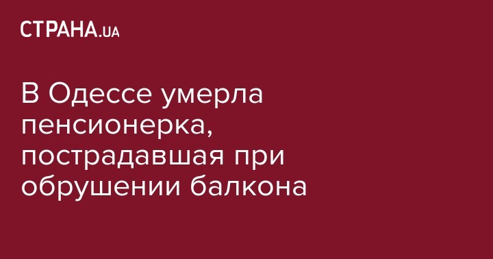 В Одессе умерла пенсионерка, пострадавшая при обрушении балкона