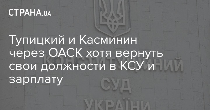 Окружной административный суд города Киева (ОАКС) зарегистрировал два заявления от Александра Тупицкого и Александра Касминина, отстраненных от должностей в Конституционном суде президентом. Заявители просят суд запретить КСУ совершать действия, направленные на прекращение их полномочий.